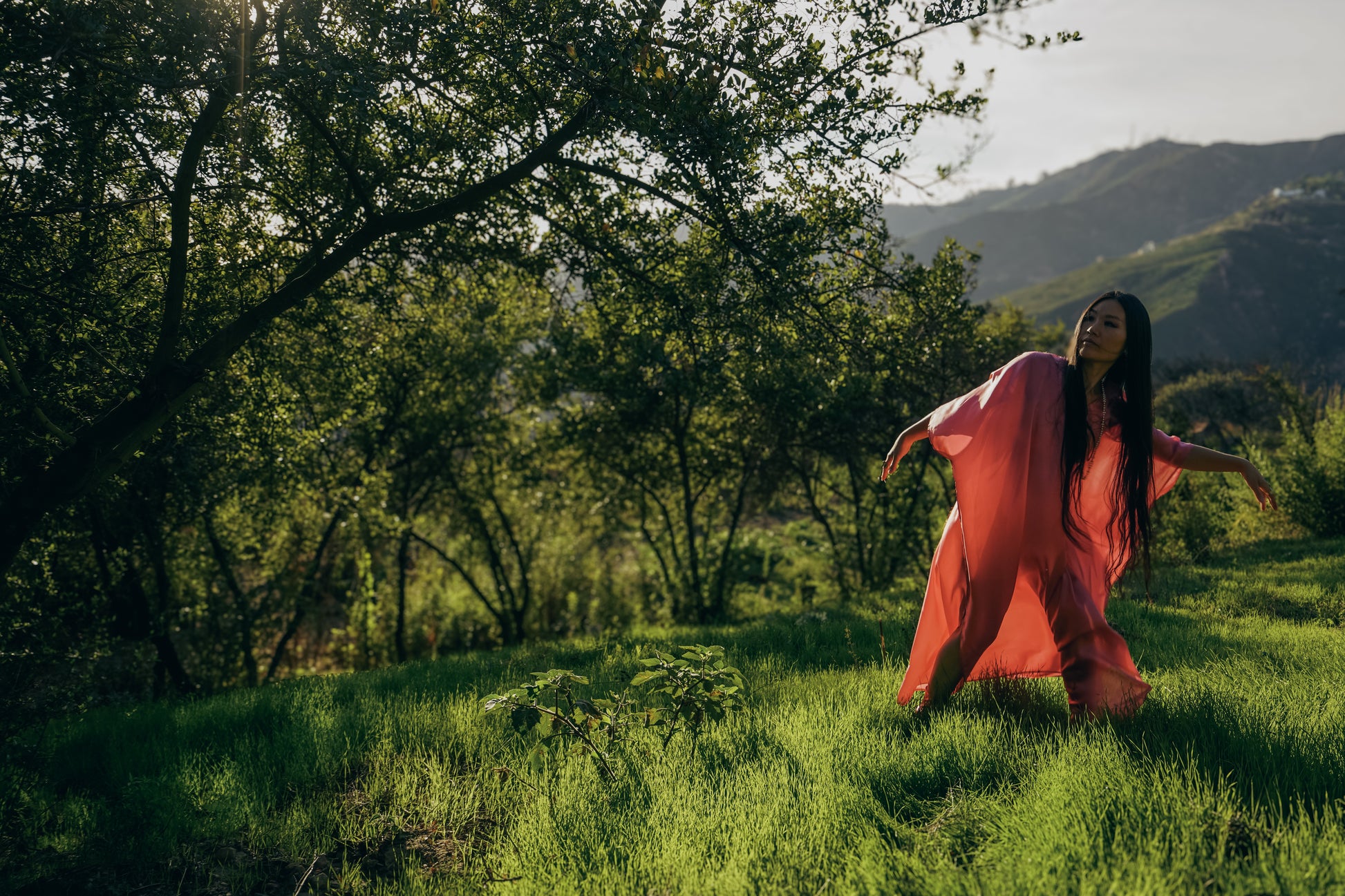 Silk charmeuse kaftan dress.